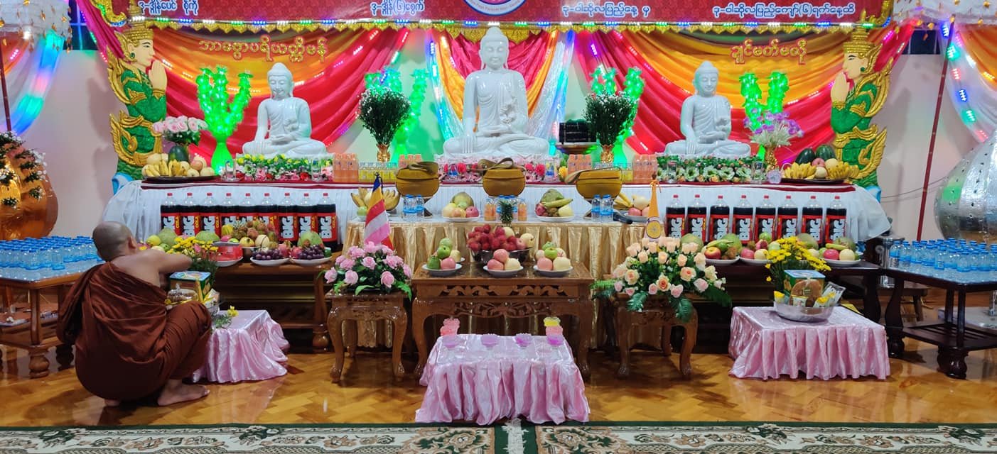 Local Mon Literature and Culture Committee (Yangon) and Ramanya Ponnya Kari Association (Yangon) jointly held Mon traditional alms food offering at the Mon Community Hall on Thursday. On every full moon day of Tawthalin, Mon ethnic people from every ward, village and township across the nation offer alms food dedicating to the Lord Buddha. The tradition of alms food offering of Mon people has flourished since Sasana Era 450 (94 B.C). According to the saying of ancient wisdom and the chronicles, the tradition of alms food offering in the ship-shaped stupas has been held every full moon day of Tawthalin in wards and villages of Mon people since the time when Pitakat or religious scriptures were started to bring in the region of Ramanya, Mon land. Dr. Min Khin Sein, Chairman, Mon Literature and Culture Committee (Yangon) said ” Actually, alms food offering is held at dawn of the full moon day of Tawthalin. As a Mon tradition, variety of fruits, snacks and food, flowers, candles and streamers that we want to offer will have to be brought to the monasteries or community places in the evening of the day before the full-moon day and then, the sanghas offer the donated food to the Buddha images at dawn and shared merits.” At the alms food offering ceremony, Mon ethnic people in the respective townships of Yangon region offered variety of fruits, snacks and food. Mi Moe Moe San, South Dagon Township said ” As the preservation of our Mon tradition, our new generations annually come to donate variety of fruits, streamers, snacks and desserts to the Lord Buddha. This is our Mon tradition and the event is held annually every full moon day of Tawthalin.” Mi Aye Aye Thein, Hlaing Township said ” This is the tradition and custom of Mon people. It is a festival that has been held since long ago. We also bring new generations of Hlaing Township. We’d like to know this tradition to them and to preserve it.” The donation is also aimed to intend to promote unity and friendship among Mon people living in the townships of Yangon Region and to preserve the traditional custom by handing down to the new generation.