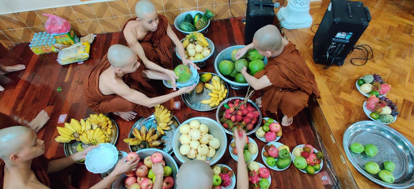 Offering fruits as alms in Buddhism is a meaningful act of generosity and devotion. Fruits symbolize purity and the gifts of nature, representing respect for the Buddha, the Dhamma, and the Sangha. This practice helps cultivate inner peace, gratitude, and mindfulness. It is believed to bring good karma, prosperity, and blessings for good health and long life. Families who participate in fruit offering rituals often strengthen their unity and community spirit. It also serves as a valuable lesson for younger generations, teaching them compassion, generosity, and respect for tradition. Fruit offering remains a significant part of cultural and spiritual life.